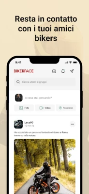 Crea il tuo profilo, identifica la tua moto e il tuo stile, inserisci la città dove giri, renditi visibile agli altri biker. Scopri il primo social network interattivo dedicato al mondo delle due ruote, condividi la tua passione, trovi nuovi amici, organizza viaggi con loro, scopri i migliori eventi, trova club e gruppi.