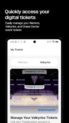 • Ticket Management: Conveniently manage your tickets for Warriors and Valkyries games, as well as all other Chase Center events, directly within the app.
