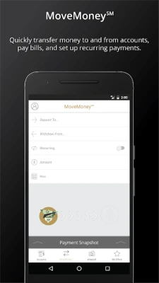 Our mobile banking app gives you the ability to safely and securely log in and manage your account with the following options: